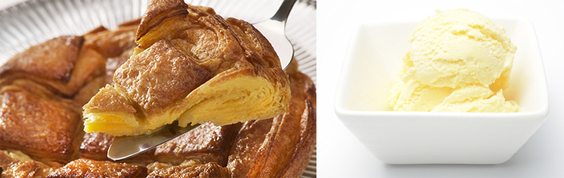 – Une part de Kouign Amann légèrement réchauffée pour son côté doux et fondant
